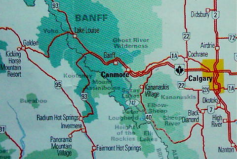 From Calgary take the Canmore Exit 91 to 1A and follow the clover leaf...