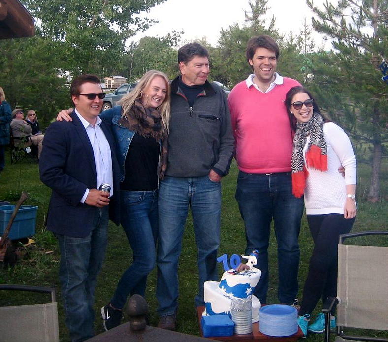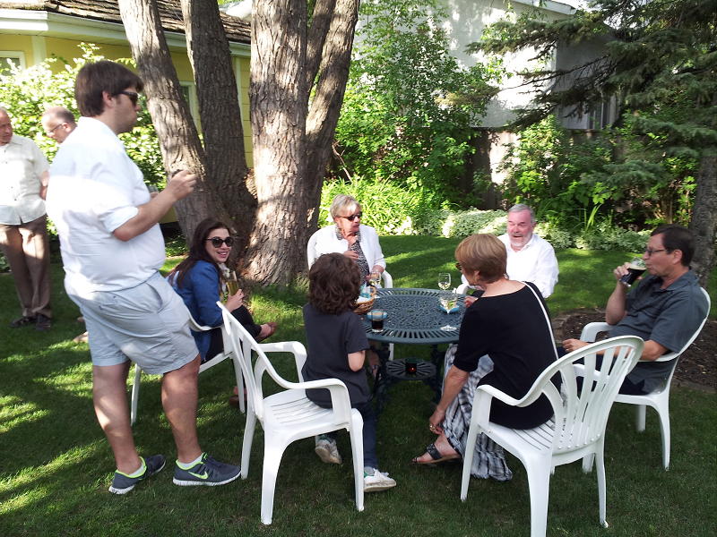 I was well aware that it was a two party weekend. I was a bit suspicious that something special was going to happen at the Sunday party. I had no idea the surprise would be at the Eckstrom's party and that it would involve people from across Canada! Unbelievable when I opened a cabin door to see Howard from Calgary, Emma from Edmonton, Cliff & Pat from Qualicum Beach, Eric & Linda from Langford, Brian, Bruna, Kyi & Kaidon from Mississauga. Then Uncle Murray from Montreal strolls onto the scene. Later Francoise & Carika arrived from South Africa via Rocky Mountain House. |