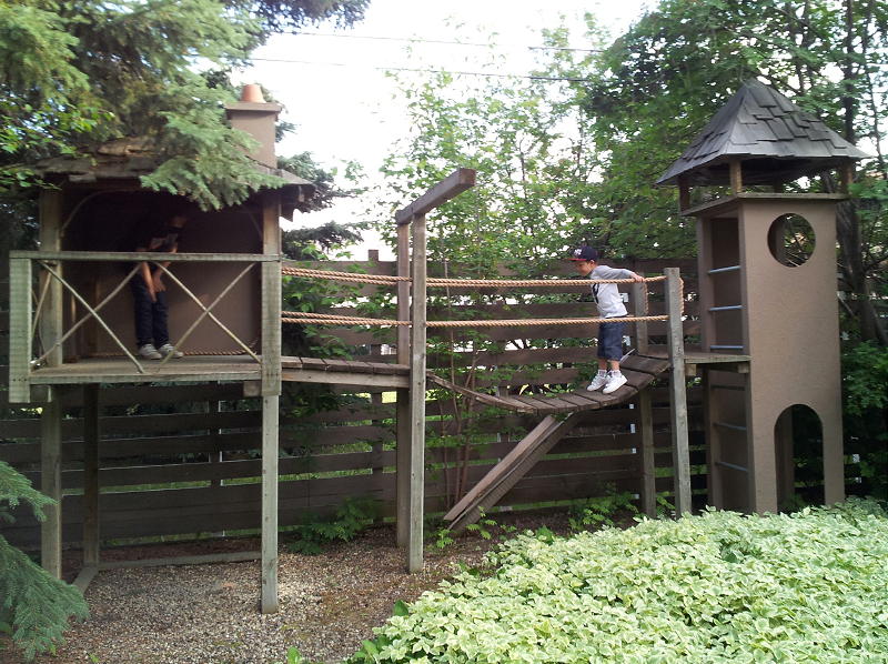 Kyi and Kaidon enjoying the back yard playhouse complex that Carol-Lee's