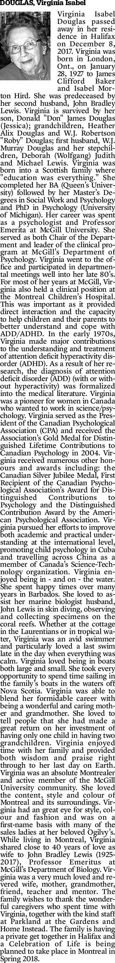 8, 2017. She was Aunt Ginny to many of the Douglas clan and mother of cousin